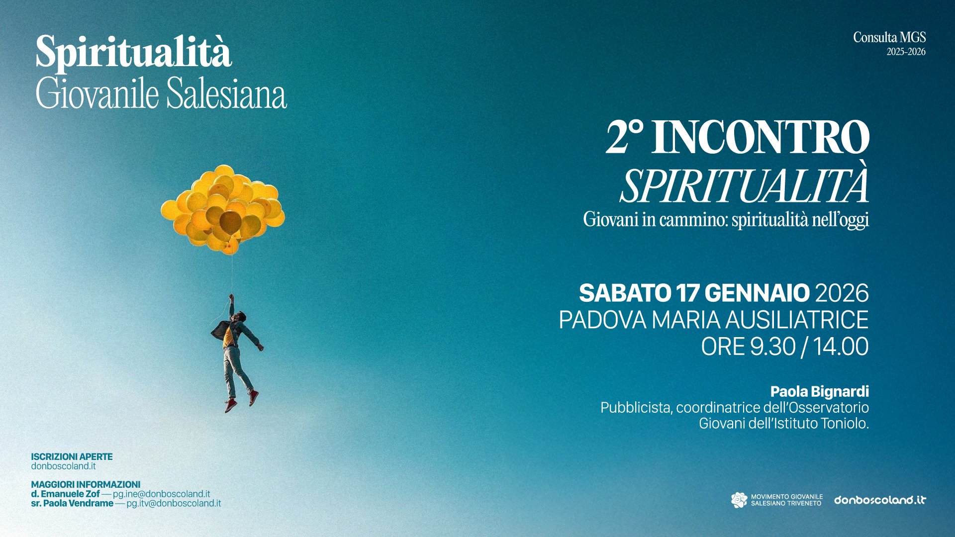 Dopo esserci incontrati a settembre, con l’aiuto di don Francesco Galante per definire che cosa intendiamo con “spiritualità”, a gennaio saremo accompagnati dalla dottoressa Paola Bignardi* che ci aiuterà a riflettere sulla “spiritualità giovanile”.