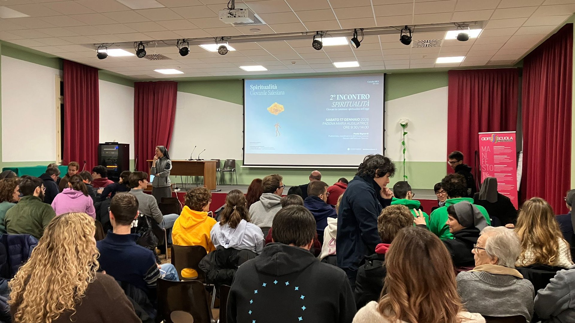 Sabato 17 gennaio, presso l’Istituto Maria Ausiliatrice di Padova, si è vissuta una mattinata intensa e partecipata dedicata al tema della spiritualità giovanile salesiana. L’incontro ha raccolto circa un centinaio di persone tra salesiani, Figlie di Maria Ausiliatrice, cooperatori e giovani, segno di un interesse vivo e condiviso per una dimensione che continua a essere centrale nel cammino educativo e pastorale.